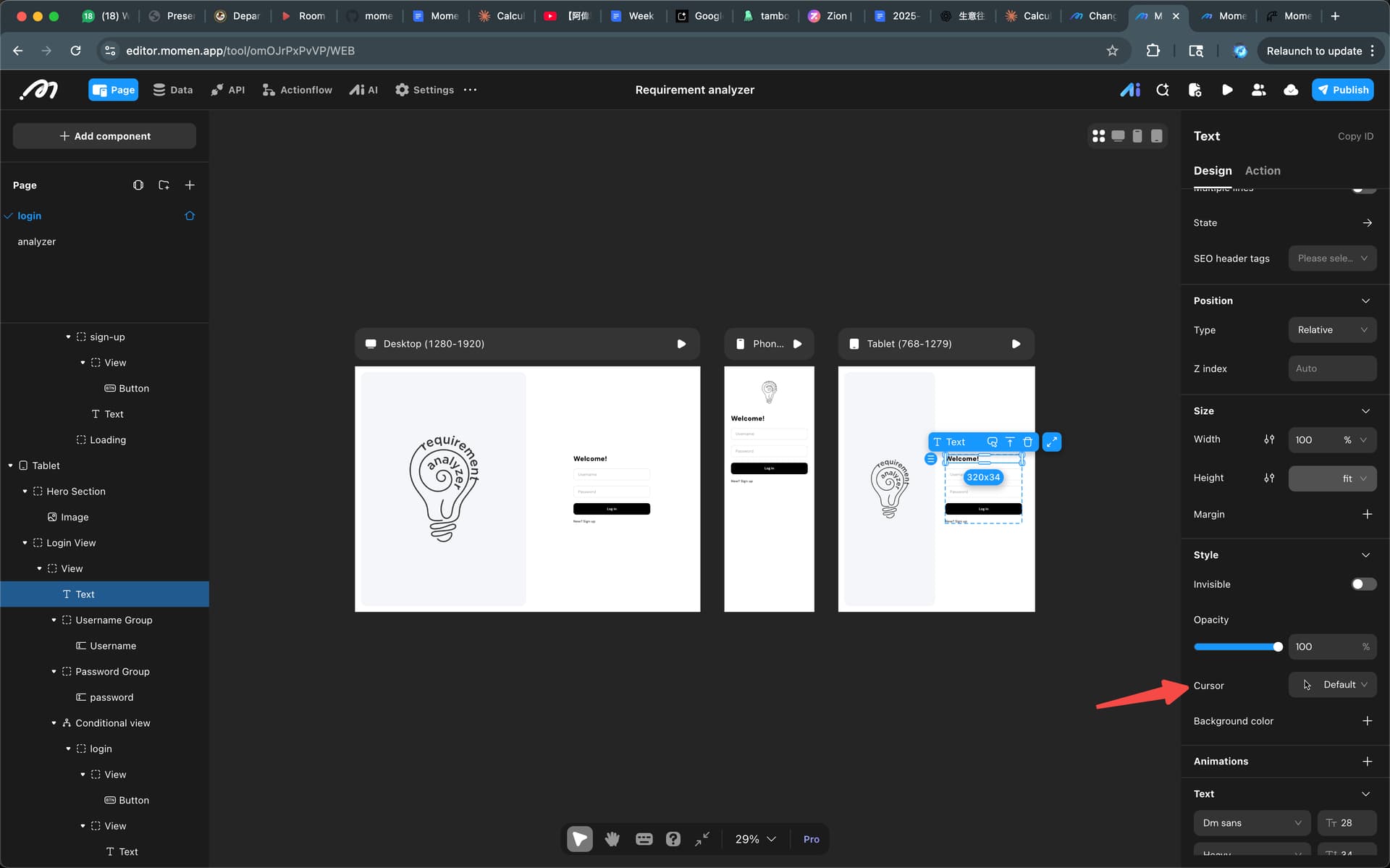 Yep, I see how to do it on a text component but I am trying to do it on a list item (box/view) so the cursor will give a visual indicator that this is clickable, etc…