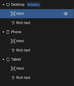 Use the following code to style all rich text elements on the entire page across all screen sizes: