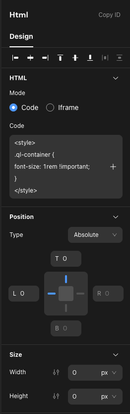However, since you’re already using raw HTML and CSS, you can add an HTML element with absolute positioning and 0 x 0 size at the root. This will not interfere with other elements.
