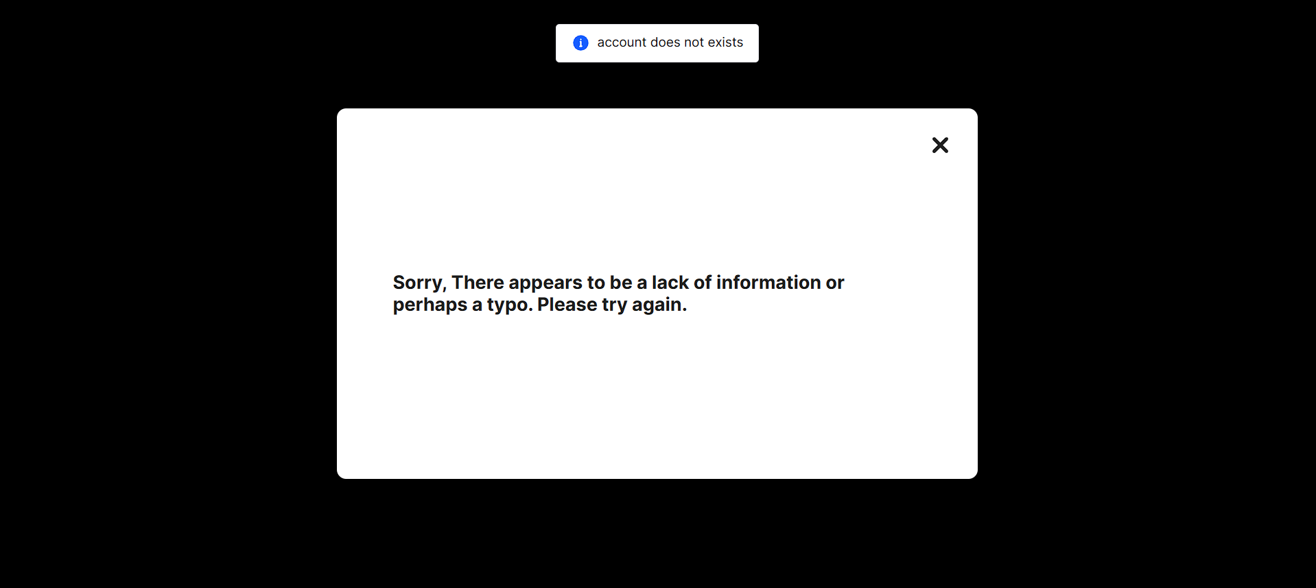 Here is a screen shot of what I was trying to explain. I have a modal blurring out the rest of the page. This is a when a user has bad credentials when logging in and essentially I want to show a custom “error message”. But above my modal you can see the system notification from Momen that I can’t even block out with blur or the modal its self.