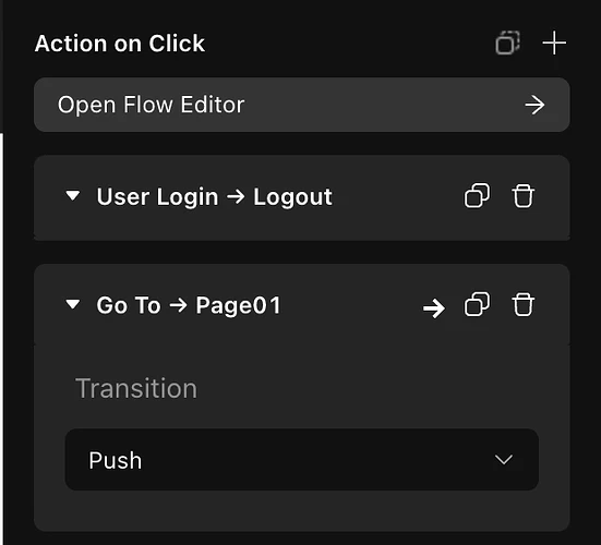 You can configure a navigation action after the logout action, and push it to the page you want. For more details about login/ logout, please refer to User Actions | Momen Docs